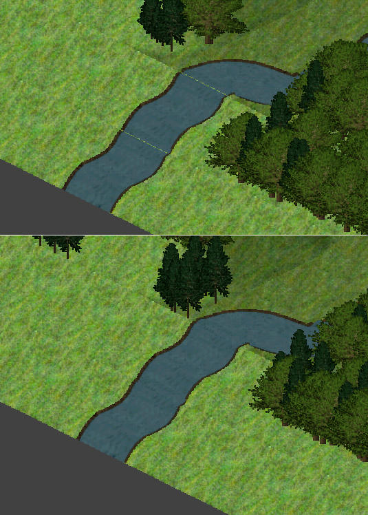 It only happens when zooming in or out. The zoomed river graphics does not met the expectations of the graphics engine, hence glitches.